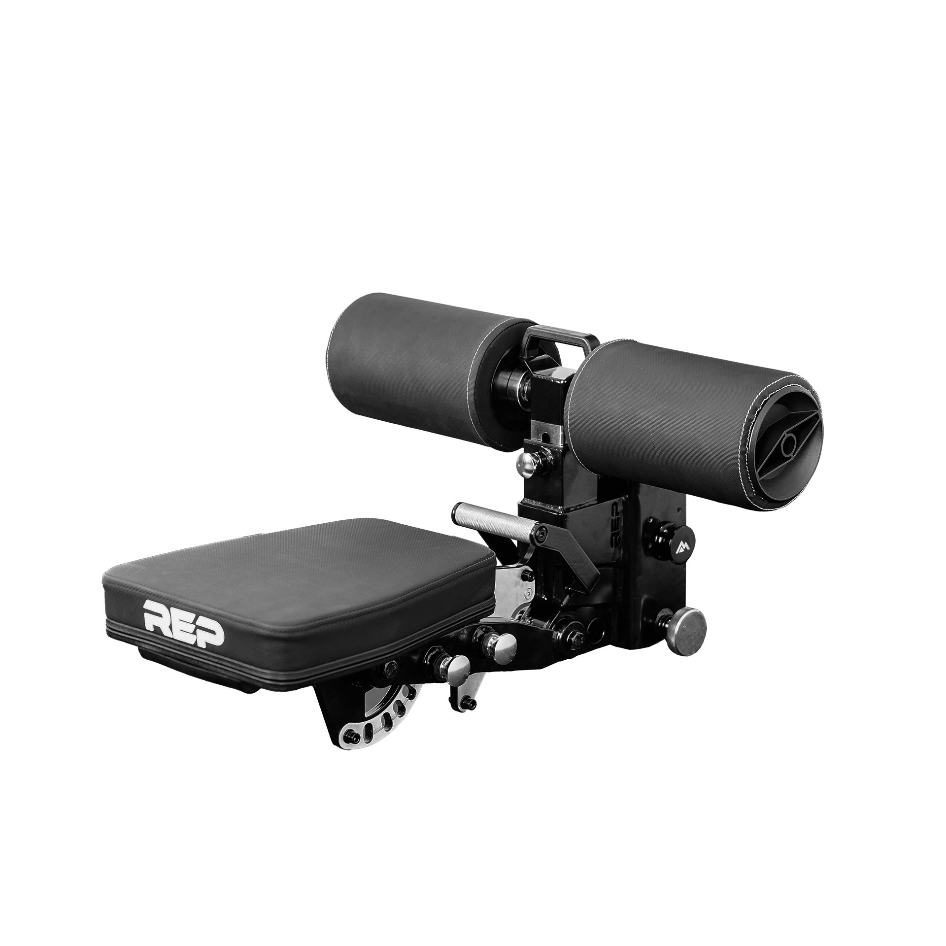 Lock it in with a premium mountain logo magnetic pin. The Pegasus™ features thoughtful details, too, such as a pop-pin system on the seat and a telescoping post on the leg roller to allow further adjustability. A knurled tightening knob secures the seat and upright attachment snuggly to the upright. The CleanGrip™ material on the pad is durable and allows athletes to stay in a secure position while performing exercises. The Pegasus™ attachment is aesthetic, with a REP logo and metallic black finish.