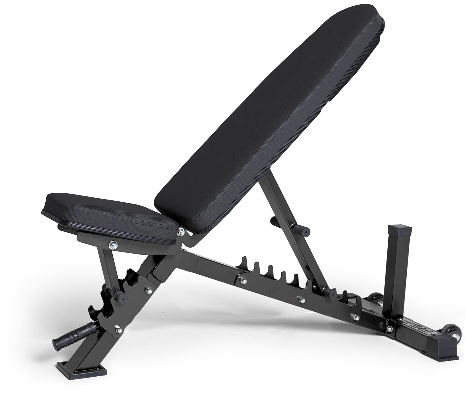 The AB-3100 is REP’s most affordable adjustable bench, while still featuring six back pad adjustments (from flat to 90 degrees) and three seat angle options (from flat to 20 degrees). The AB-3100 is a heavy-duty, flat-incline bench (no decline position) with a three-post design, so the legs of the bench won’t get in the way of your feet while pressing. Easily and securely switch angles with the ladder adjustment design.
