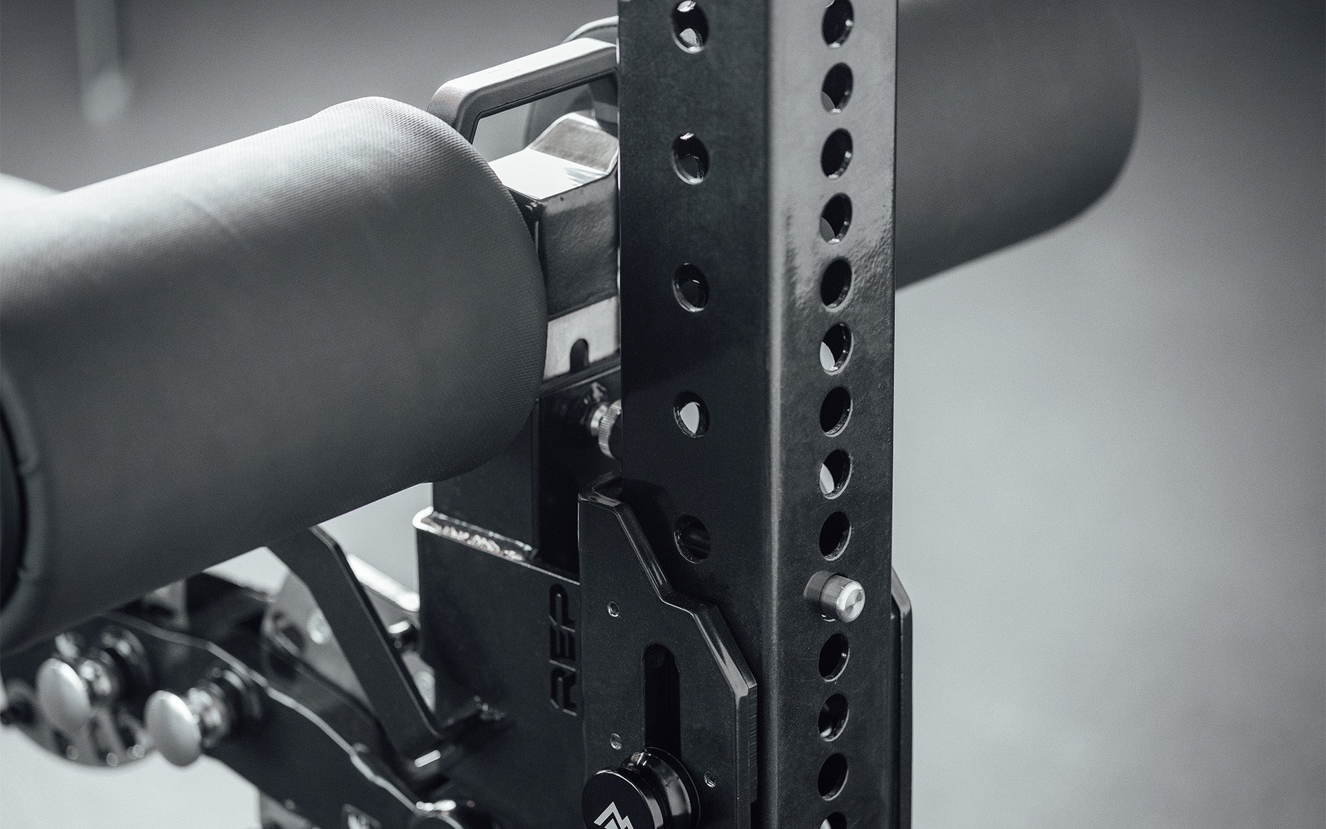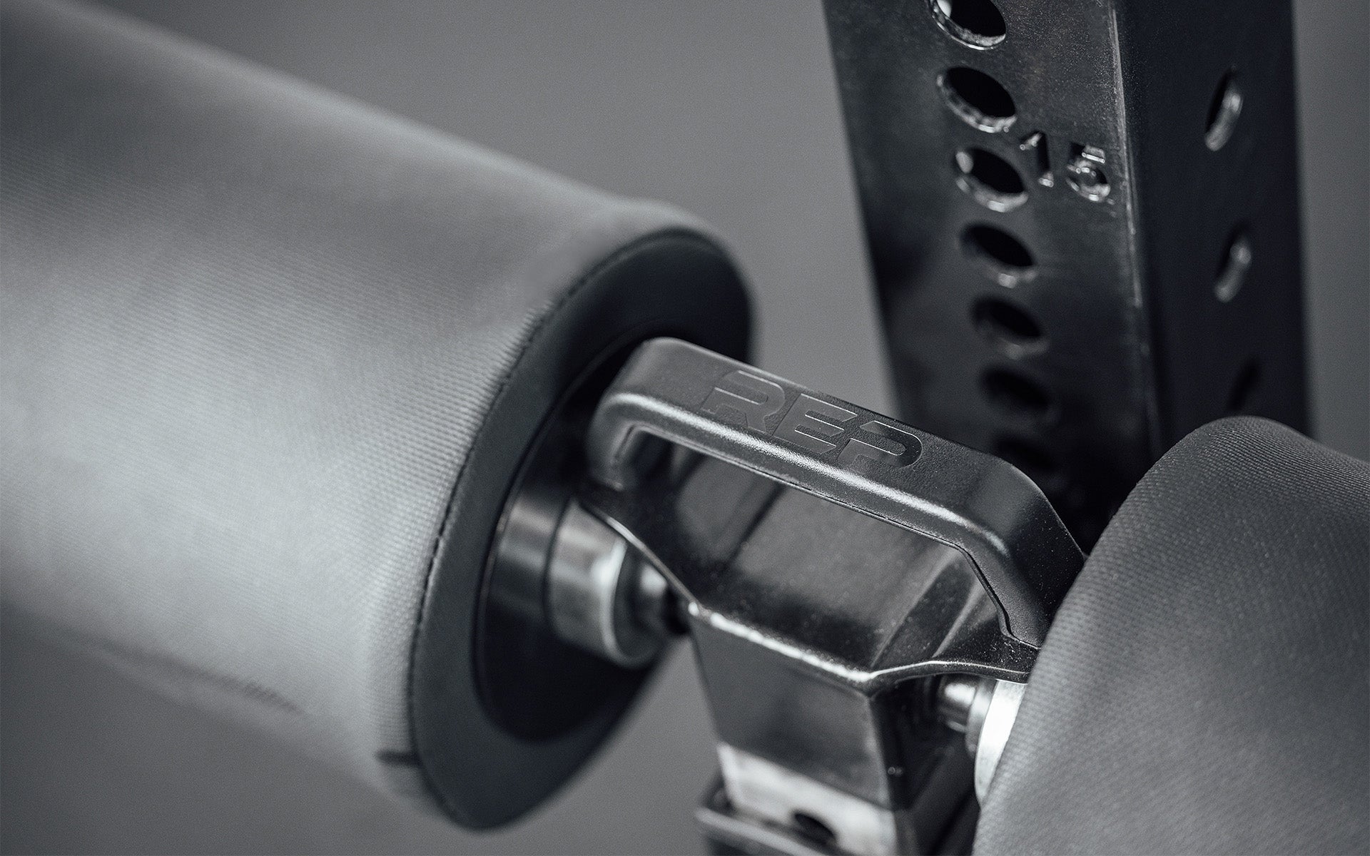 Lock it in with a premium mountain logo magnetic pin. The Pegasus™ features thoughtful details, too, such as a pop-pin system on the seat and a telescoping post on the leg roller to allow further adjustability. A knurled tightening knob secures the seat and upright attachment snuggly to the upright. The CleanGrip™ material on the pad is durable and allows athletes to stay in a secure position while performing exercises. The Pegasus™ attachment is aesthetic, with a REP logo and metallic black finish.